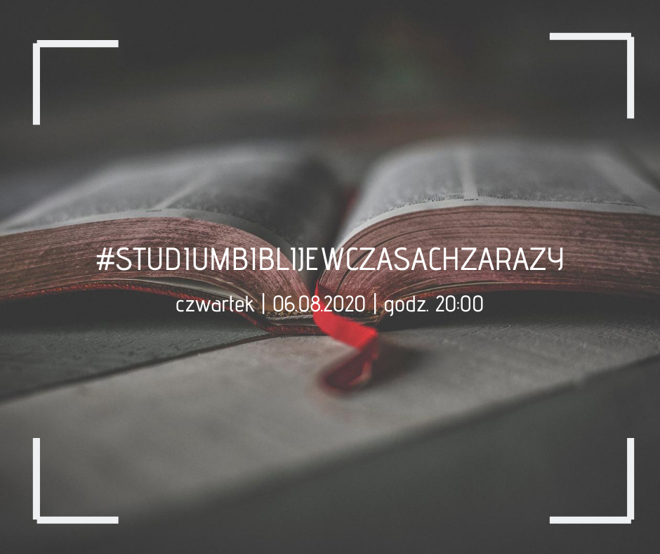 Wakacyjne Studium Biblijne, 6.08.2020 Serdecznie zapraszamy na wakacyjne Studium Biblijne!!! czwartek, 6 sierpnia 2020 o godz. 20.00 na platformie zoom Link do spotkania: https://us02web.zoom.us/j/83600396251 Pliki do pobrania #STUDIUMBIBLIJEWCZASACHZARAZY, 6.08.