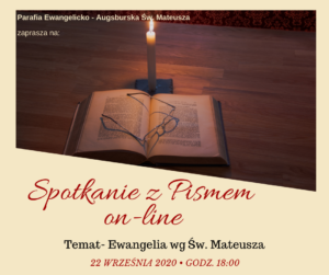 SPOTKANIE Z PISMEM, 22.09.2020 Spotkanie z Pismem Świętym – wtorek 22.09.2020 godz. 18.00. Zapraszamy! Link do spotkania na platformie zoom: https://us02web.zoom.us/j/89286427004 Pliki do pobrania fb- Spotkanie z Pismem, 22.09.