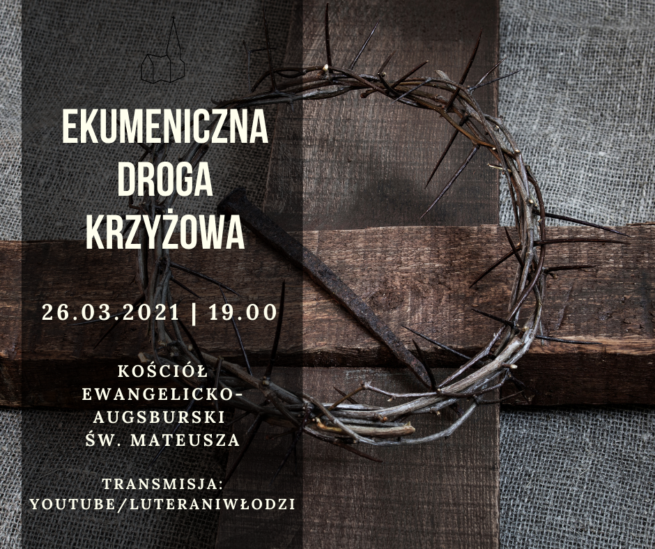 Archidiecezja Łódzka oraz łódzki oddział Polskiej Rady Ekumenicznej zapraszają na Ekumeniczną Drogę Krzyżową, która odbędzie się stacjonarnie w Kościele Św. Mateusza w piątek, 26 marca o godz. 19.00.
