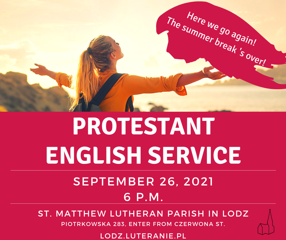 The summer break is nearly over and we are planning on new edition of English Services!!! We are very excited to invite you to Protestant English Worship in September. Exceptionally it is going to take place on the 4th Sunday of the month: