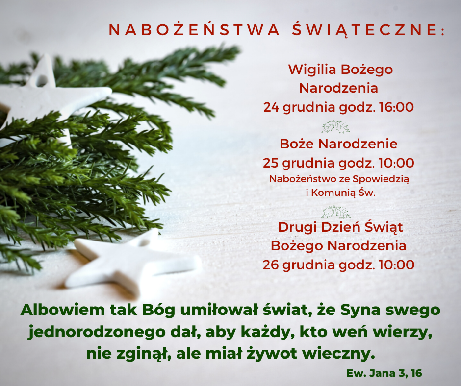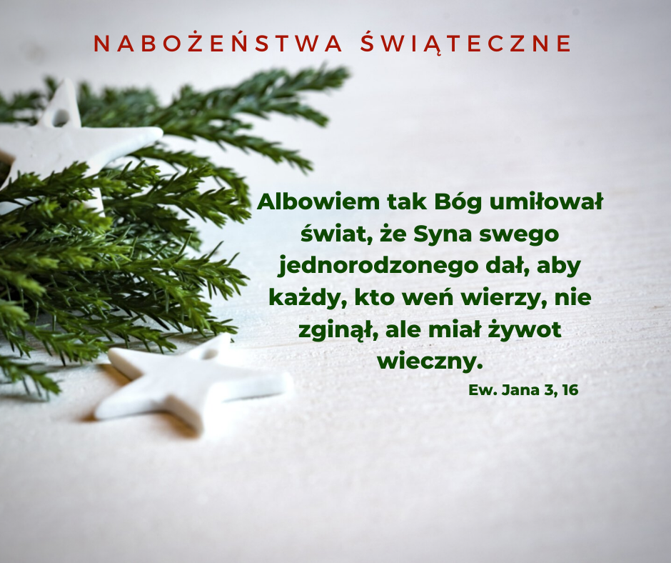 Zapraszamy do zapoznania się z planem nabożeństw w Święta Bożego Narodzenia. Na każde nabożeństwo jesteście zaproszeni!![]()