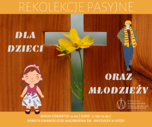 W Wielki Czwartek, 14 kwietnia, w naszej kaplicy- Mateusiku, w godzinach 11:00-14:30, odbywać się będą Diecezjalne Rekolekcje Pasyjne dla dzieci i młodzieży