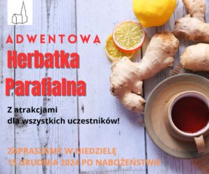 HERBATKA PARAFIALNA 15.12.Już w najbliższą niedzielę zapraszamy Parafian w każdym wieku na Świąteczną Herbatkę Parafialną. Do zobaczenia! Pliki do pobrania Herbatka Parafialna 15.12.2024