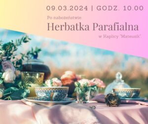 HERBATKA PARAFIALNAW wiosennej aurze zapraszamy na Herbatkę Parafialną w najbliższą niedzielę, 9. marca, po nabożeństwie. Pliki do pobrania herbatka parafialna (2)