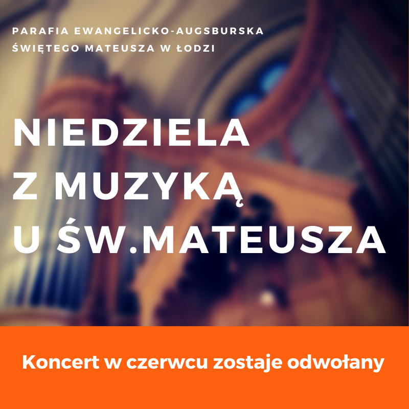!!! W związku z sytuacją pandemii oraz wynikającym z tego znacznym ograniczeniu ilości osób mogących przebywać w Kościele, koncert Niedziela z muzyką u św. Mateusza w czerwcu zostaje odwołany !!!