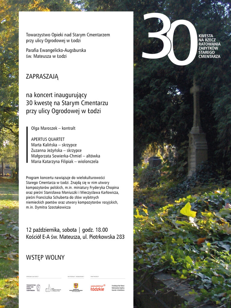 KONCERT INAUGURUJĄCY 30 KWESTĘ NA RZECZ RATOWANIA STAREGO CMENTARZA Pliki do pobrania KONCERT - zaproszenie - kwesta 12.10.