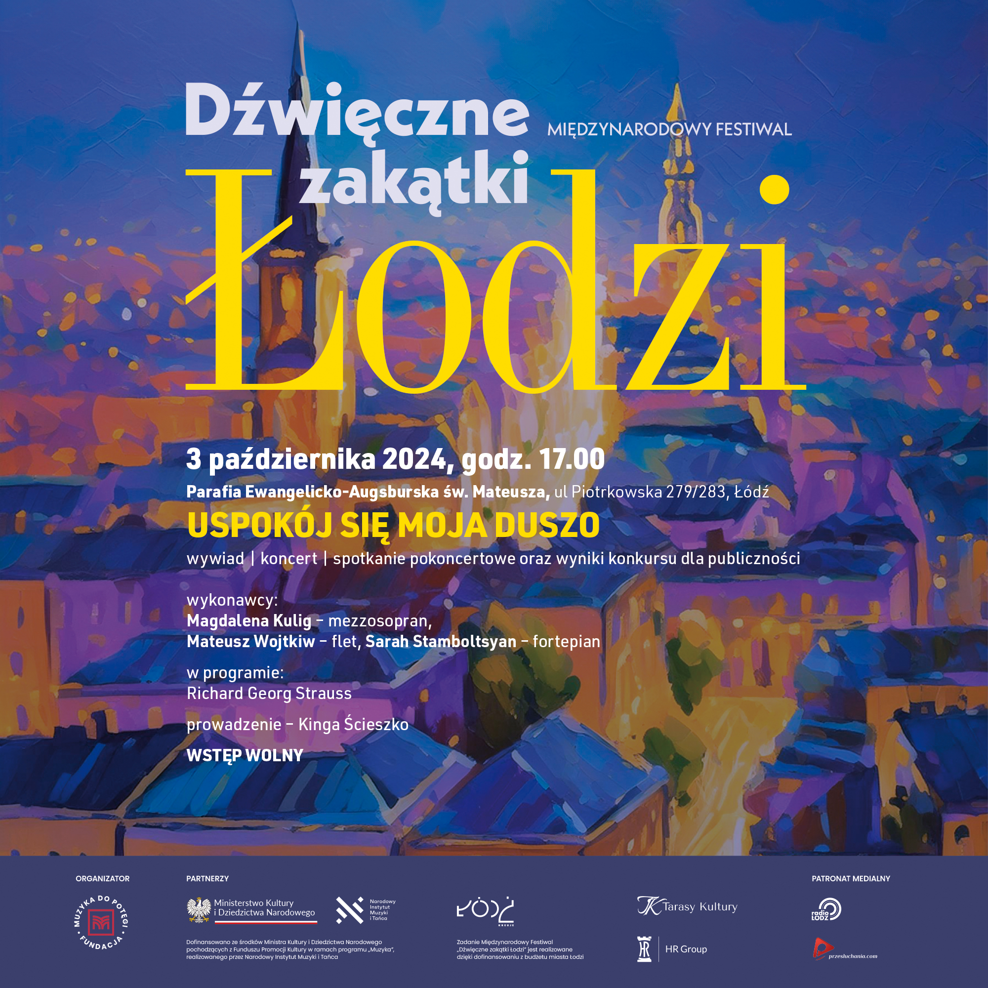 3 października w Kościele św. Mateusza w Łodzi, w ramach międzynarodowego festiwalu Dźwięczne Zakątki Łodzi, odbędzie się koncert “Uspokój się duszo moja” Wywiad z artystami  i koncert poprowadzi Kinga Ścieszko. Wstęp wolny. Zapraszamy!