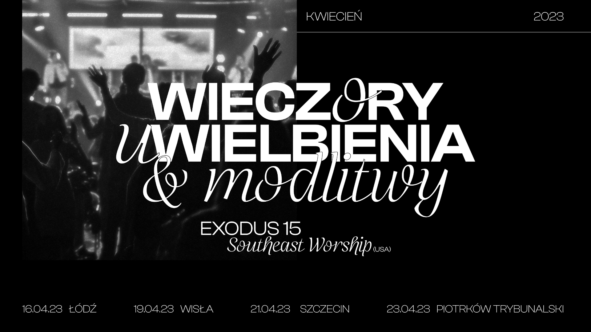 Zapraszamy na wyjątkowy wieczór uwielbienia i modlitwy do Kościoła św. Mateusza. Gościć będziemy zespół EXODUS 15 oraz Southeast Worship (z USA).